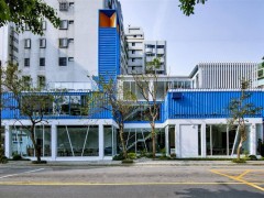 看到如此熟悉的紋路,就應(yīng)該知道這又是一家集裝箱改造而成的三層建筑了。然而事實是建筑的外表僅以集裝箱鐵皮作為裝飾,實則為鋼骨結(jié)構(gòu)。外觀以藍白為主,形似一[查看詳情]