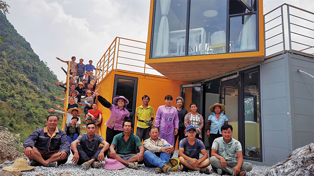 屯里的村民第一次集體到剛落成的集裝箱民宿里面參觀,陳圓圓說,他們都洗干凈手腳,換了干凈的衣服,脫了鞋,“這是對(duì)他們關(guān)于現(xiàn)代居住環(huán)境的啟蒙,也是他們共同的事業(yè)。”