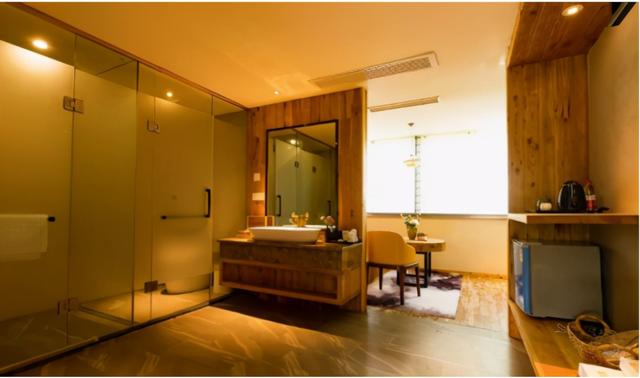 房間的露臺有玻璃棧道的感覺,正對著外面的大山和流水的落地玻璃窗,滿眼的綠色和大山。老板很有創意,利用集裝箱和徽文化的完美結合,打造了這家集裝箱民宿,住進去完全感受不到是住在集裝箱里。當徽式禪意遇上了輕奢工業風,集裝箱的巧妙介入,使得整體的觀賞性和功能性達到了一個絕佳平衡,住這樣的居所,才叫銷魂。