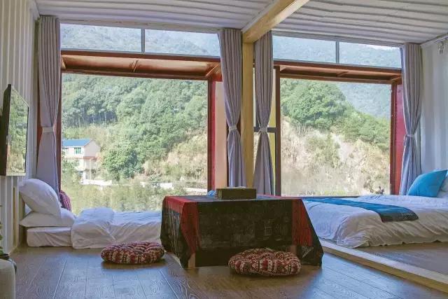 房間有兩個超大的落地窗,山景一覽無遺,沉浸在大自然的山景里,一個人慢慢靜心下來。