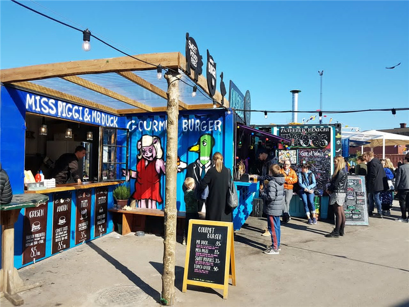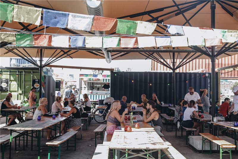 說到街邊小攤,大家的第一反應應該都是臟亂差吧。但是如果把這些小攤都規(guī)劃到集裝箱里,那就搖身一變?yōu)樽钍軞g迎的市集了。哥本哈根新的街頭食品市場就是一個最好的例子,占地面積約10000平方米,擁有現(xiàn)場音樂會、跳蚤市場、工作坊和54個來自世界各地的美食小吃攤。