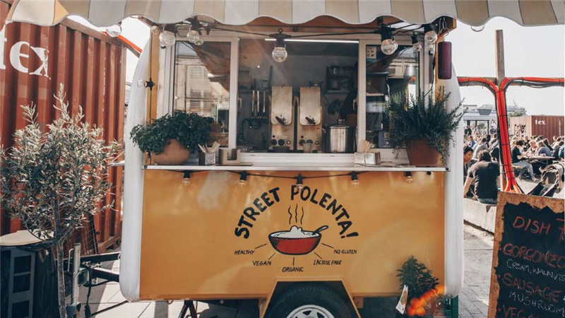 每個商家都會使出渾身解數(shù)去裝扮自己的“箱子”,以求可以在人群中脫穎而出,同時又彰顯出自己的特色。打扮成一輛可移動的美食車未嘗不是一個吸引人流的策略;又或者是采用夢幻的馬卡龍綠,彎曲的鐵皮作為最大的招牌;再或者是直接把自己裝扮成一艘陸上游艇……