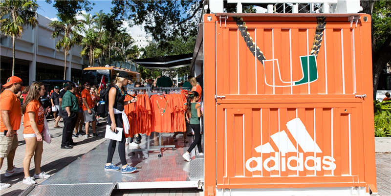 品牌宣傳在經(jīng)營中十分常見,有效的宣傳有利于提高知名度和帶來可觀的經(jīng)濟(jì)效益。一些知名品牌為了達(dá)到更好的宣傳效果還會選擇與其他領(lǐng)域的品牌合作,比如運動品牌阿迪達(dá)斯、邁阿密大學(xué)就進(jìn)行了一次大流量合作,在一次對戰(zhàn)足球隊的比賽中,使用改造后的集裝箱作為個性化可移動零售空間,為游客創(chuàng)造了獨特的互動購物體驗。