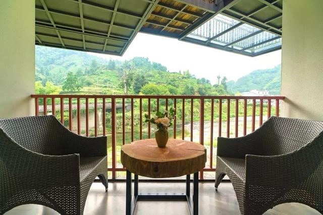 全景落地窗引景入室,推開落地窗,可見露臺,滿目徽州絕美山水。