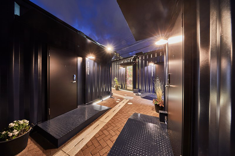 還記得每當約了三五知己一起出去旅游的時候,總會因為酒店住房的人數問題而卡住。如果能湊雙數開雙人房是好,但是一旦出現單數就很尷尬了,而且分開住既不經濟也不能享受通宵聊天的樂趣,如果有一種四、五人的多人房就好了。TORACO就是這么一家主打多人房的酒店,主要包括從二到五人的房型。位于日本大阪市的一個街邊轉角處,街頭的位置給酒店帶來了絕佳的人流量。同時,全集裝箱改造的亮點也帶了不少的關注度。