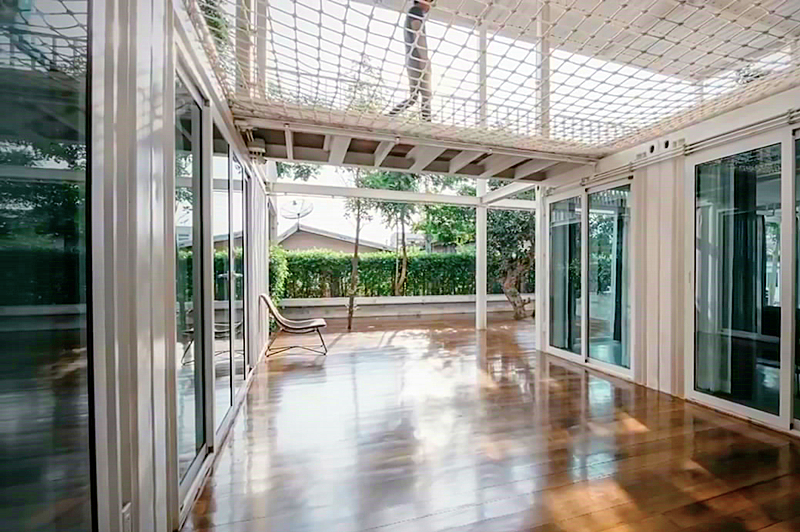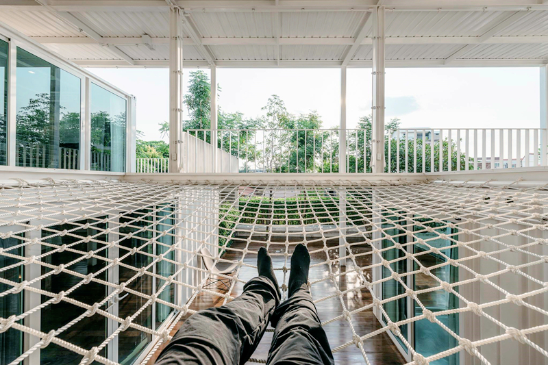 房子還有一個(gè)有趣的網(wǎng)狀天窗設(shè)計(jì),這樣既可以保證一層走廊的透光性,又為生活增添了一點(diǎn)休閑的樂(lè)趣。想要放松的時(shí)候隨便一趟就是整個(gè)房子專(zhuān)設(shè)給你的“搖籃”。
