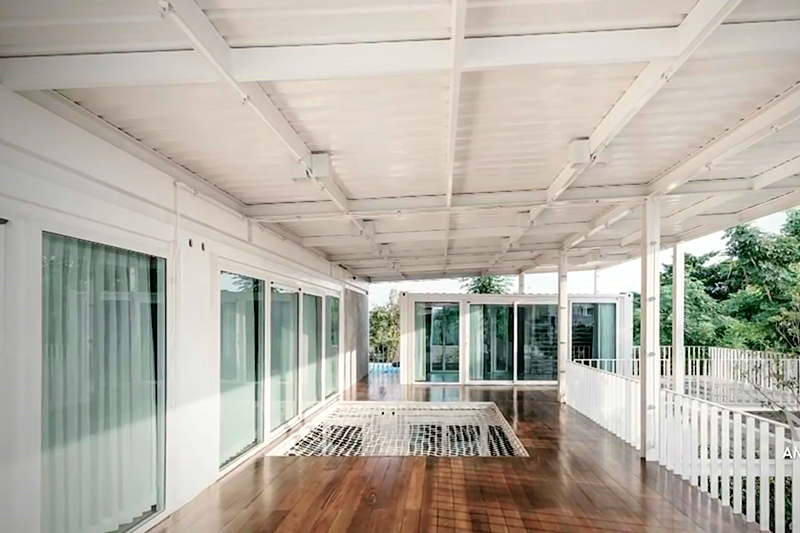 為了讓房子的架構(gòu)清晰簡(jiǎn)便,整體就像線狀結(jié)構(gòu)一樣設(shè)計(jì),無(wú)時(shí)無(wú)刻向你述說(shuō)著開(kāi)放的宗旨。屋頂則有為散熱而設(shè)計(jì)的鋁棚,讓整體視覺(jué)增大了不少。