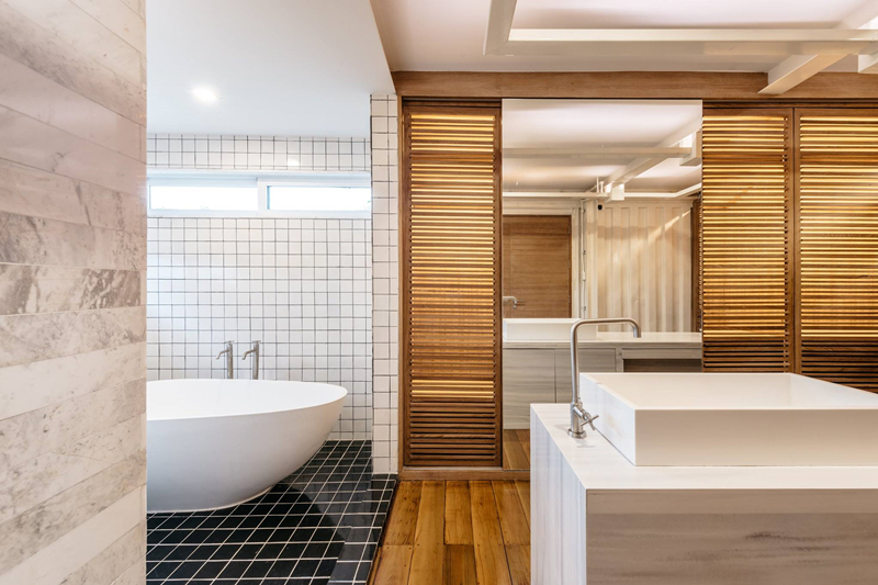 浴室同樣也是很寬敞,而且按功能劃分區(qū)域。墻體上瓷磚的設(shè)計(jì)會(huì)使得房子的防潮效果更好,浴缸的存在簡(jiǎn)直就是豪宅的標(biāo)配了~