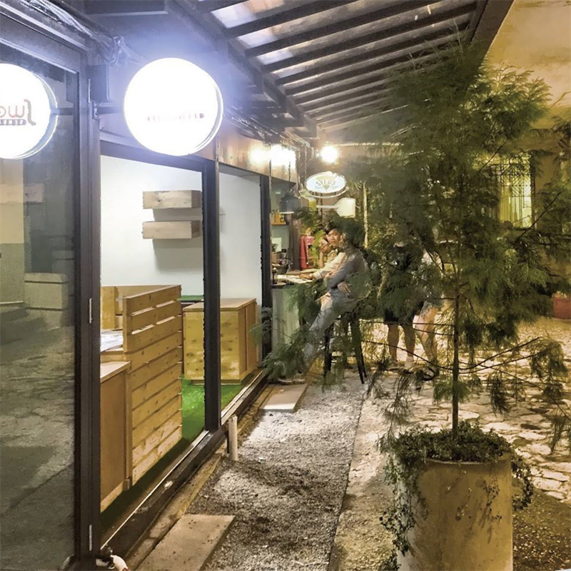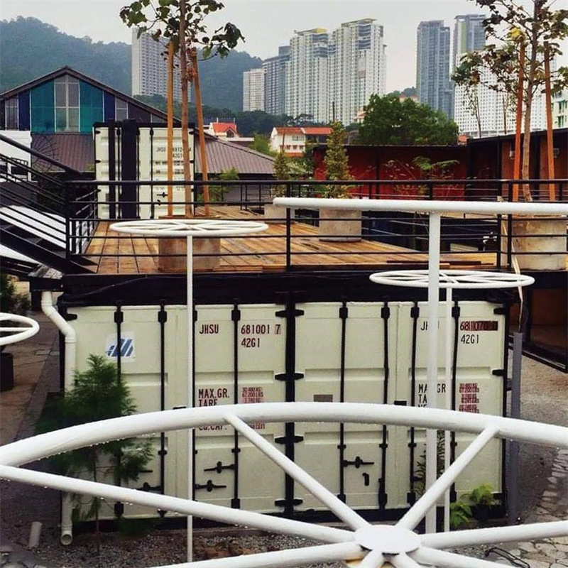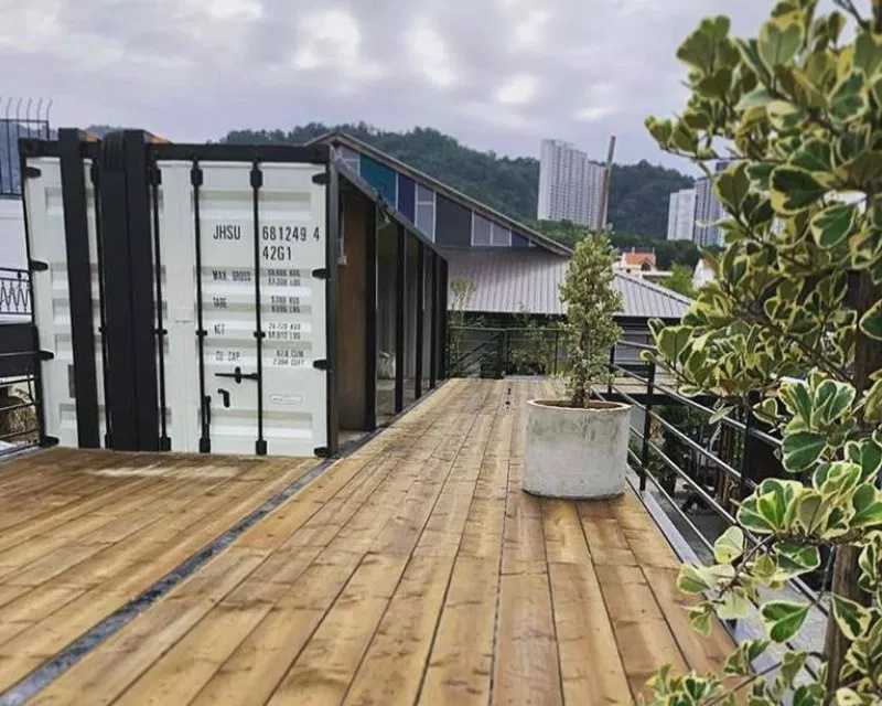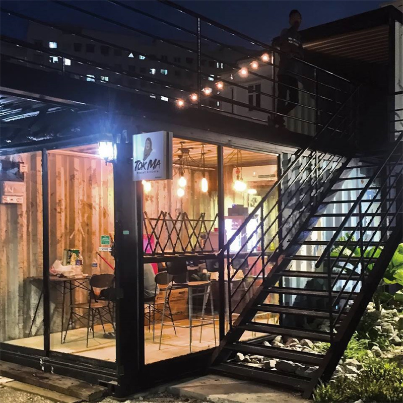 而有一些店家則會(huì)直接在頂層的露臺(tái)上再加建一個(gè)集裝箱,作為兩層建筑使用,擴(kuò)大室內(nèi)的使用面積。