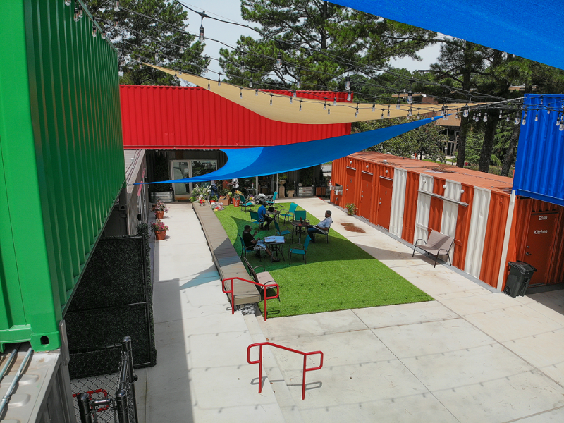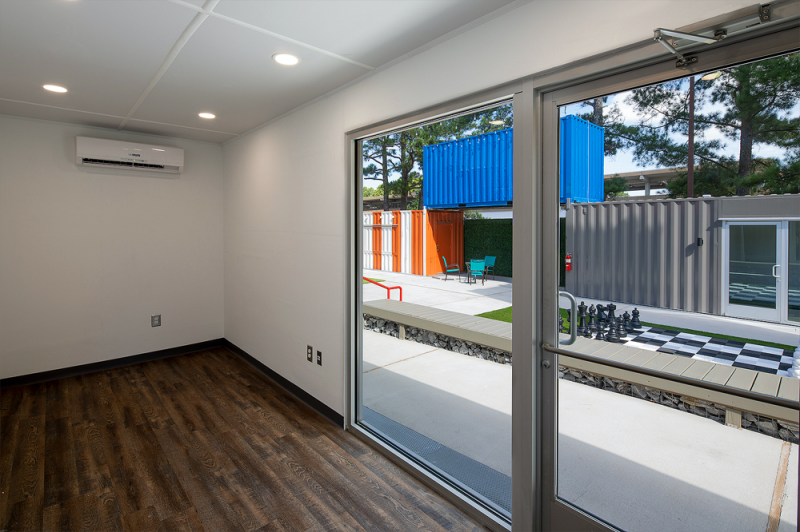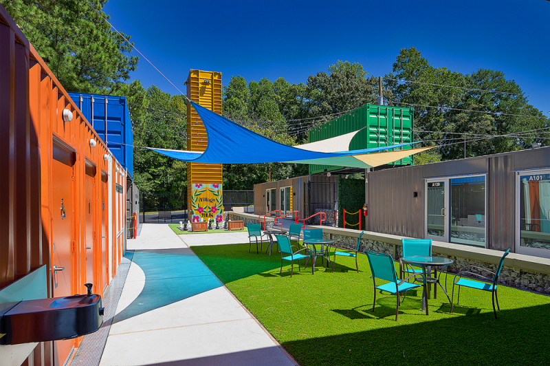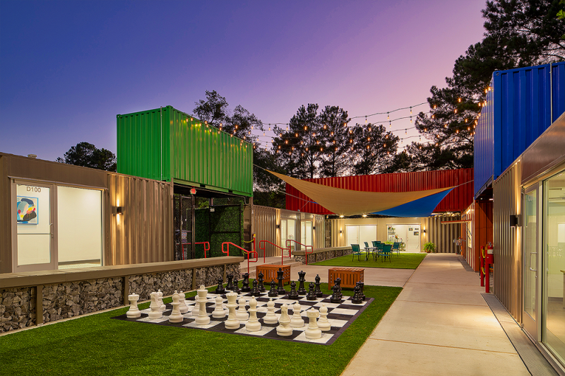 該項(xiàng)目作為產(chǎn)業(yè)孵化器將八家企業(yè)容納在改用的集裝箱中,多個(gè)集裝箱以圍成矩形平面的方式創(chuàng)建中部的共享活動(dòng)空間。iVillage @ MLK位于漢密爾頓E. Holmes MARTA火車站附近,部分資金來(lái)自該市獲得的聯(lián)邦交通投資促成經(jīng)濟(jì)復(fù)蘇(TIGER)贈(zèng)款,該贈(zèng)款旨在擴(kuò)大七個(gè)州的商業(yè)機(jī)會(huì),與該項(xiàng)目的創(chuàng)業(yè)孵化理念吻合。
