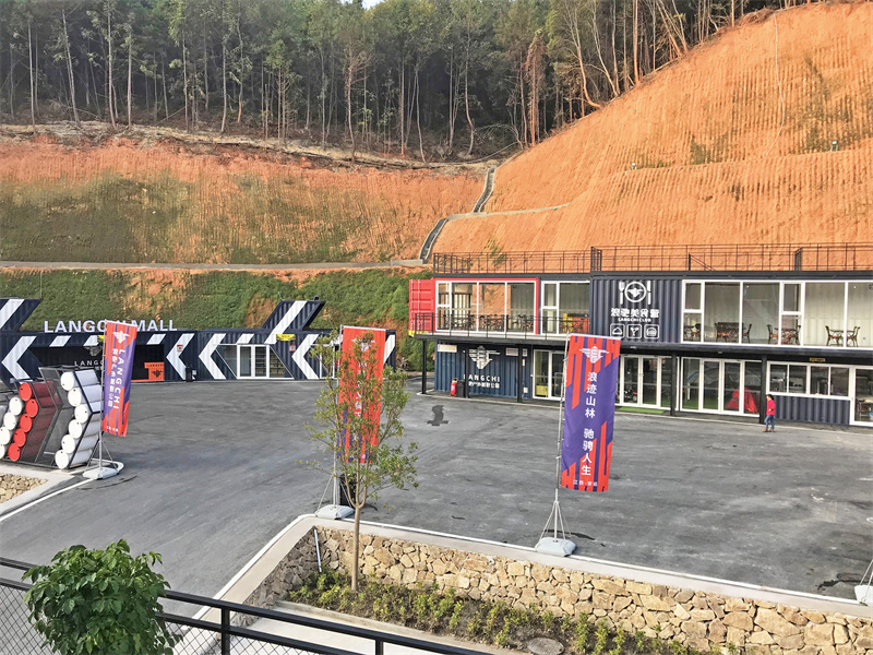 除了有集裝箱制成的接待區(qū)、休息區(qū)和購物中心,園區(qū)內(nèi)還有許多工業(yè)元素的影子。比如小巧的保安亭、油桶拼接而成的雕塑等,點(diǎn)綴著越野場的硬漢工業(yè)風(fēng)。浪跡山林,馳騁人生。
