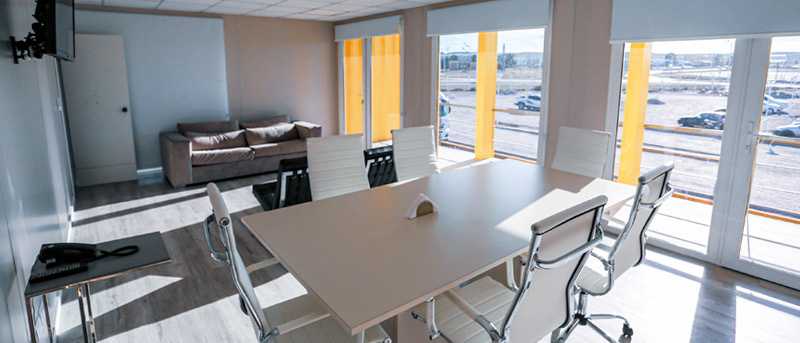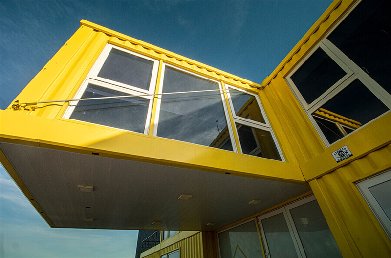 由15個可循環使用的海運集裝箱打造而成,建筑擁有懸臂式設計,其上方懸掛著兩個相連的容器,從建筑主體中脫穎而出,形成了一個可容納16人的會議室。
