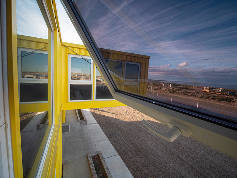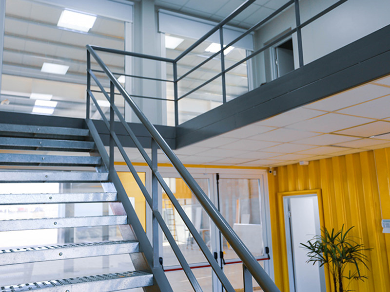 這座集裝箱辦公大樓項目包括了房屋管理辦公室、開放式辦公室、男女廁所和殘疾人廁所,一個帶小廚房的餐廳,一個有頂棚的陽臺,一個開放式露臺空間和一個中央大廳。