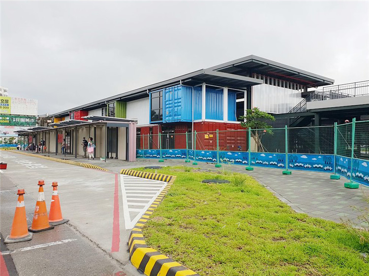 交通樞紐站作為一個(gè)連接、中轉(zhuǎn)的功能站在日常的交通體系中發(fā)揮著重要作用,是便利人們出行不可或缺的一座公共建筑。既然是一座建筑,那它可以成為模塊化建筑替換的對象嗎?臺(tái)南轉(zhuǎn)運(yùn)站為我們展現(xiàn)了新的可能。為有效梳理臺(tái)南火車站周邊的交通秩序,并提供轉(zhuǎn)乘及停車需求的臺(tái)南轉(zhuǎn)運(yùn)站,因?yàn)樾鲁钡耐庥^而吸引了一大批旅客前往打卡。車站同時(shí)以綠建材及可回收鋼構(gòu)、集裝箱作為主體構(gòu)造,東西兩側(cè)共使用了64個(gè)20尺集裝箱堆疊。