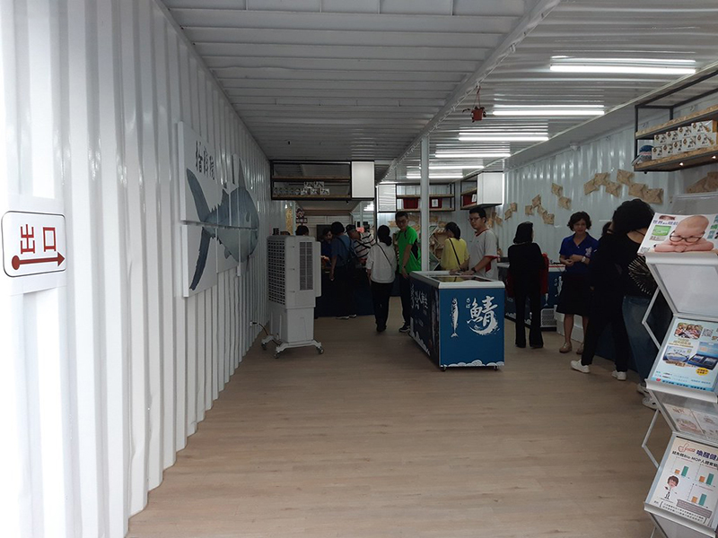 這個文創(chuàng)園名叫拾粹院,但其實它更傾向于一個鯖魚制品銷售點,從園區(qū)入口的玩偶到集裝箱內(nèi)的掛飾、擺放的商品,都是鯖魚和其相關(guān)食制品,比如鯖粹精、鯖魚罐頭、鯖沙魚等等。游客在這里既能拍照打卡,也能購買到美味的食制品。