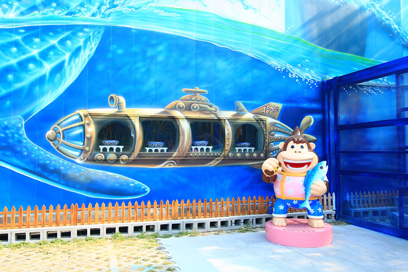 全臺灣最高的3D彩繪集裝箱在嘉義市,由知名3D彩繪藝術(shù)家圖龍所創(chuàng)作。就是你現(xiàn)在看到的這個巨型金剛,其身高高達(dá)9米,由4層集裝箱不規(guī)則堆疊而成,一旁還有皇宮般的海底世界,加長加寬,打造了令人震撼的3D效果,看到的路人紛紛拍照上傳社交平臺,使它一躍成為周邊游的新亮點。