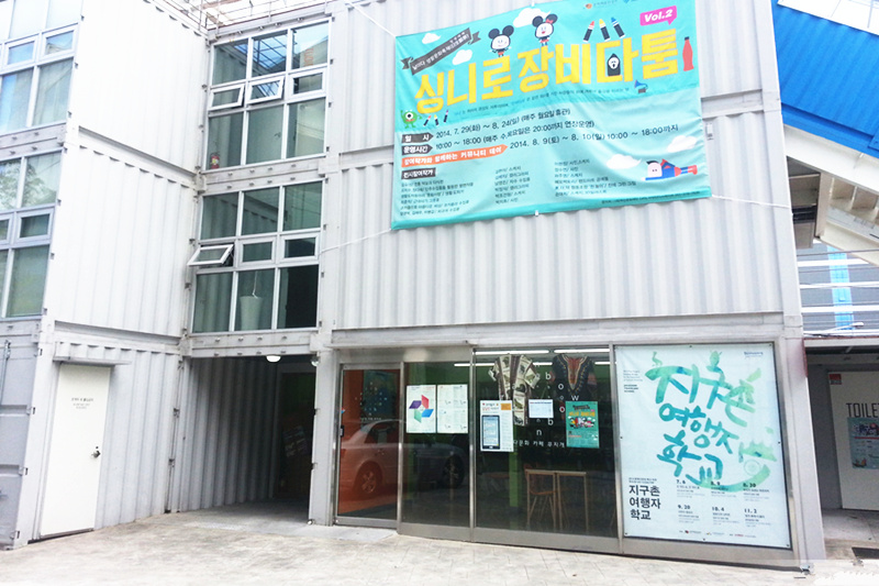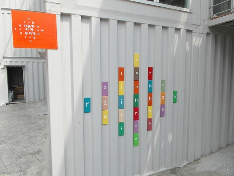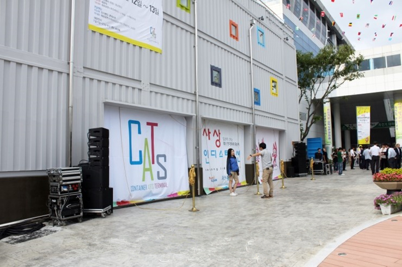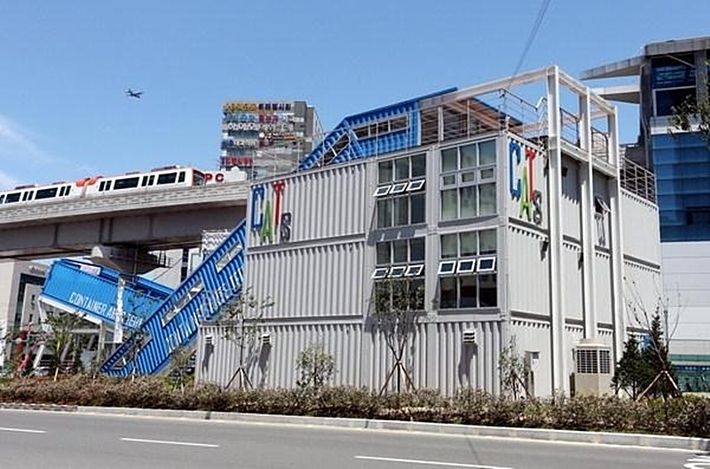 釜山至金海的輕軌中轉(zhuǎn)站沙上站前的廣場,曾是個不起眼的地方,在歷經(jīng)數(shù)年打造后,由數(shù)十個集裝箱組成的文化藝術(shù)空間于2013年5月宣布誕生。集裝箱藝術(shù)中心(CATs)”,為給在韓國全境篩選出的集裝箱賦予地域性元素,特意選定“沙上”作為舉辦地。