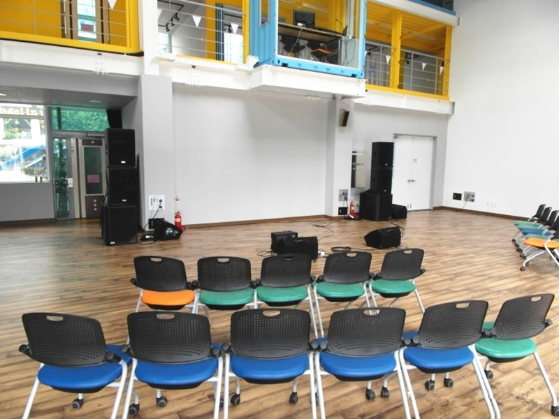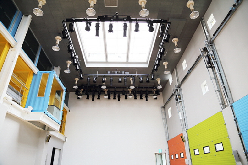 作為主要公演場地,“熱鬧樓”規(guī)模并不大,但內(nèi)部設(shè)施與一般演出場所及展覽廳相比毫不遜色。這里是一棟萬能娛樂樓,提供公演、展覽、講演、討論會、電影放映等。天窗開閉式公演場的最大特色在于,空間可根據(jù)實際需要隨意調(diào)整,且為自然采光照明,迎合了傾向于另類創(chuàng)作的年輕藝術(shù)家的感性路線。為打造一個從外部也可欣賞到展覽的效果,整樓采取全玻璃設(shè)計,沙上站一帶可盡收眼底。