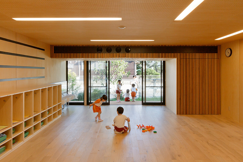 該幼兒園項目通過對閑置的海運集裝箱進行循環(huán)利用,把其進行翻新裝修并重新組合,設(shè)計成一家獨具特色的幼兒園。鑒于日本出于板塊活躍處,地震頻繁,幼兒園還進行了特別加固以應(yīng)對地震災(zāi)害。幼兒園里設(shè)計了一個中庭,中庭中央種上了綠色植物,室外空地可供小朋友課間時間嬉戲玩耍。