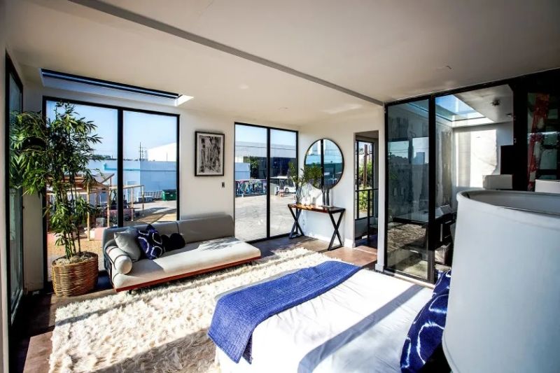 該項目建設(shè)所需的4個運輸集裝箱是使用定制的鋼材制成,完工建筑物的平均成本約為每平方米150美元。在此制造過程中,先將基礎(chǔ)結(jié)構(gòu)放置在計劃固定的位置上,并在其他位置制造所需的建筑材料。準備好所需的材料后,便會收集各個零件并將其放置在所需的位置,房子很快就可以完成建造。