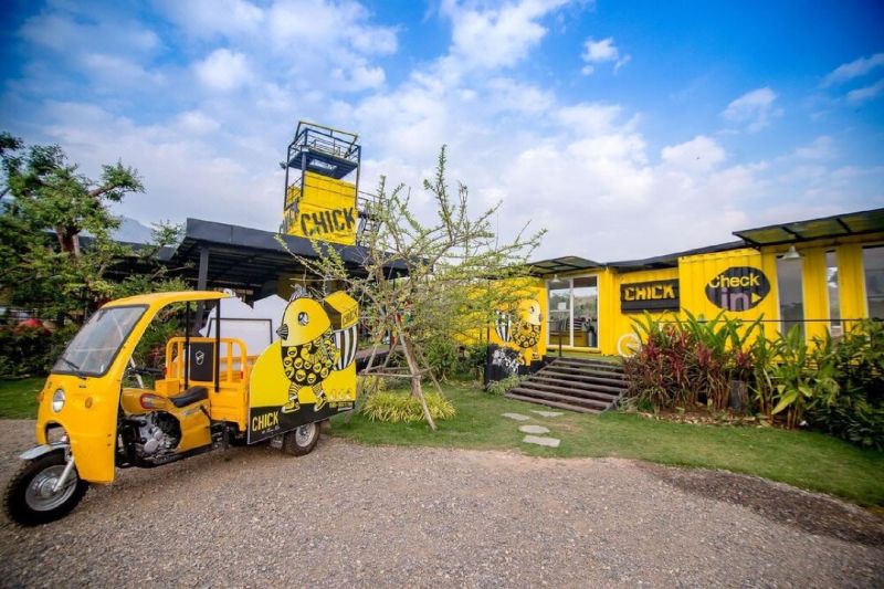 小雞度假村(Chick Resort)是一個時髦的度假村,沿用風靡的集裝箱改造,并涂成黃色,以一只可愛的黃色小雞作為吉祥物。住在這里時,會看到此卡通形象出現在度假村的不同角落,鮮艷的色彩裝飾使小鎮充滿活力。