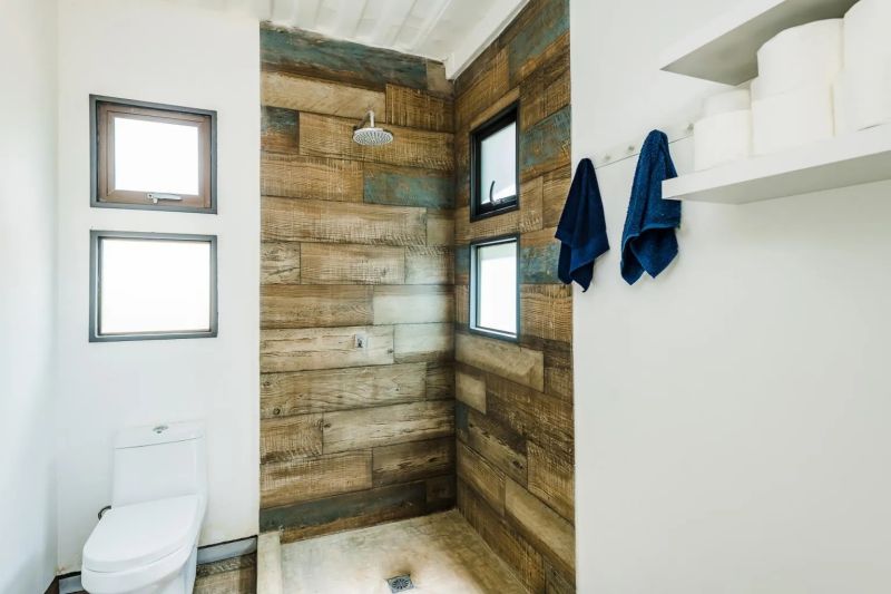 該集裝箱住宅共擁有一個客廳,三間臥室,一個大廚房,兩個浴室和一個洗衣房。每個臥室和衛浴間都開設多扇通風透光的窗戶,為居住提供舒適明亮的環境。所有臥室都以原木地板鋪設,衛浴間則以防潮瓷磚墻面鋪設。