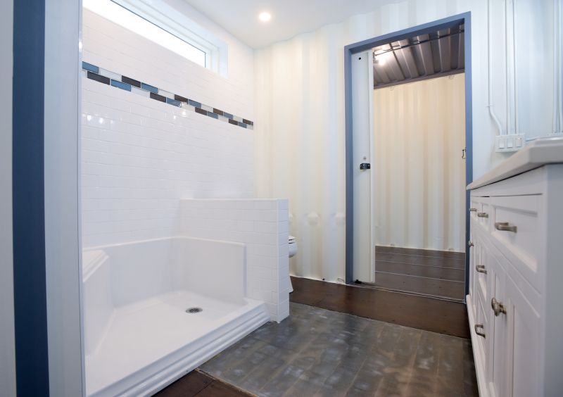 衛(wèi)浴室的設(shè)計十分明亮且寬敞,連洗漱臺都擁有并排的兩個,同時全白的色調(diào)為空間帶來整潔的視覺感。進入浴間,你可以全方位感受到集裝箱內(nèi)部的結(jié)構(gòu),墻面鋪設(shè)的瓷磚則可以有效防潮。