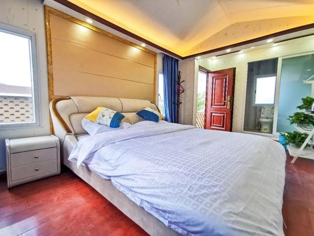 更加驚喜的是,這里還有懸在半空的玻璃集裝箱民宿!桃之源度假村負責人還起了個詩意的名字——柜族美宿。
