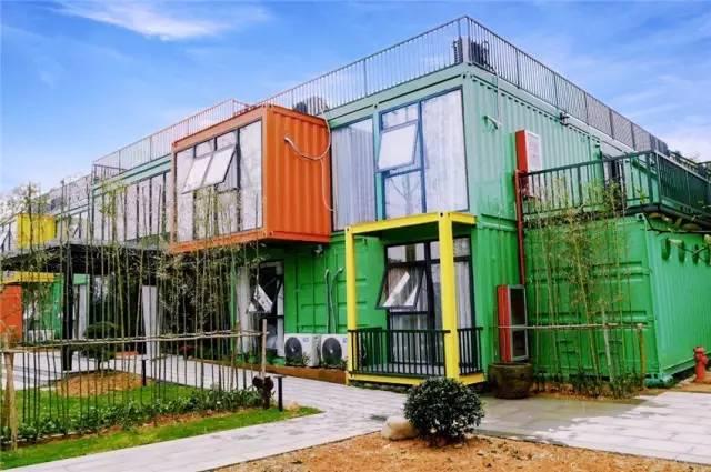 看到“集裝箱”,很多人的第一反應是貨物、港口、輪船……然而,在這里它卻搖身一變,成了創意十足的民宿,讓人眼前一亮。集約部落度假主題山莊位于余姚梁弄鎮,離美麗的四明湖僅2分鐘車程。由70多個廢舊的海運集裝箱搭建而成,分為4組創意民宿建筑群,初見它便有種驚艷的感覺。七彩的外表,遠遠望去猶如架在山水間的彩虹橋。