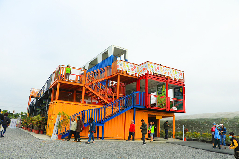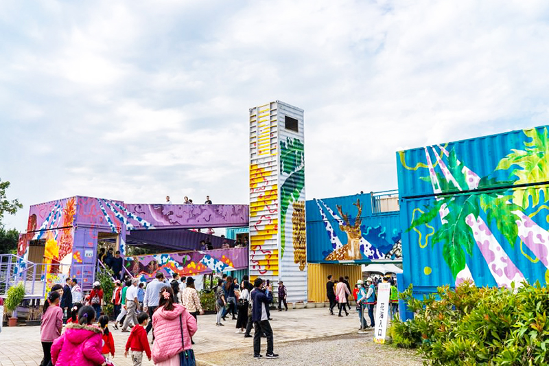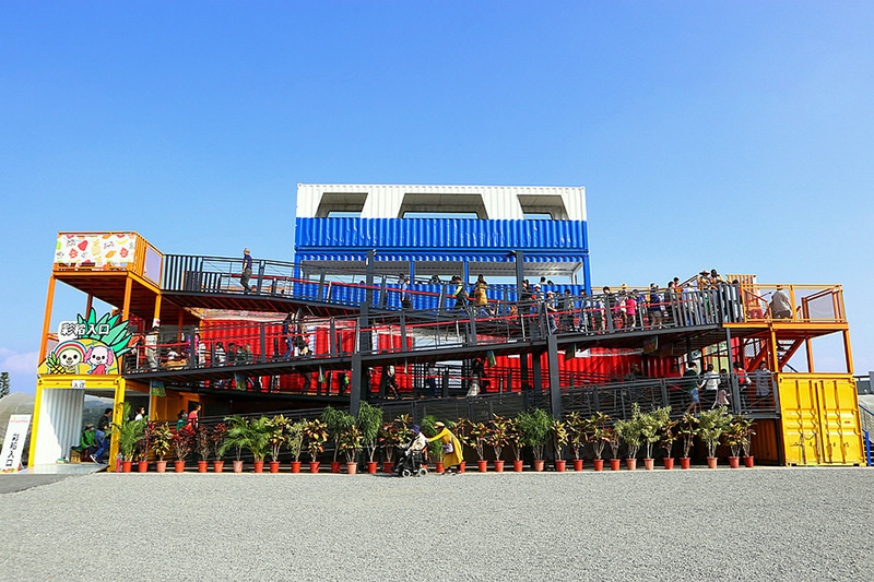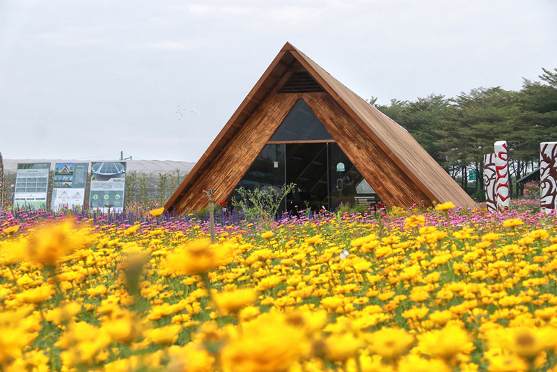 除了這些新潮有趣的集裝箱看臺,還有另一個獨具特色的建筑——竹夢館,這是一個用竹子花了至少一個月才制作出來的建筑,外觀看起來就像是小型教堂,搭配后方的花海就很有自己的味道。竹夢館中主要用于介紹本土產(chǎn)材加工、文創(chuàng)商品等。