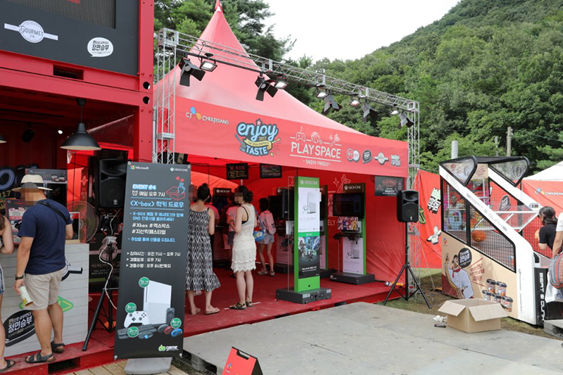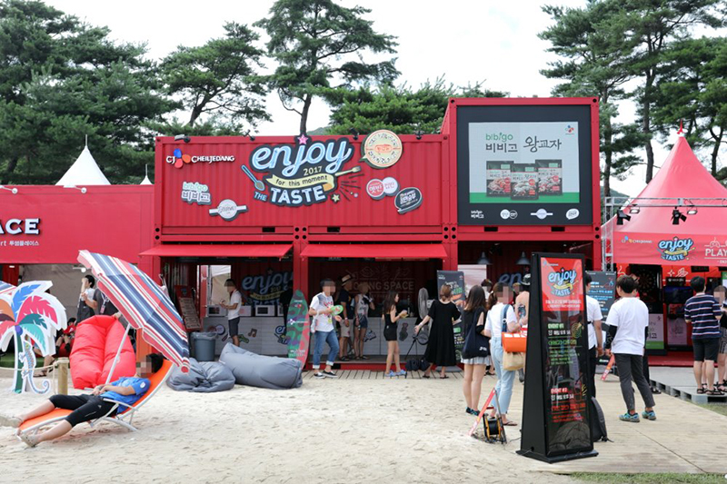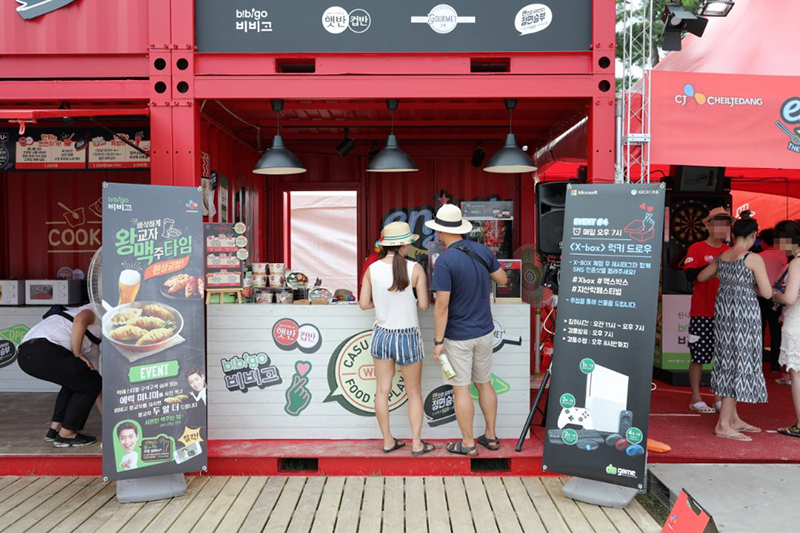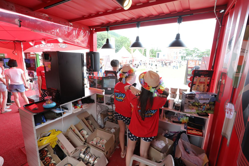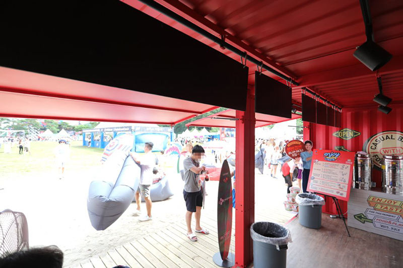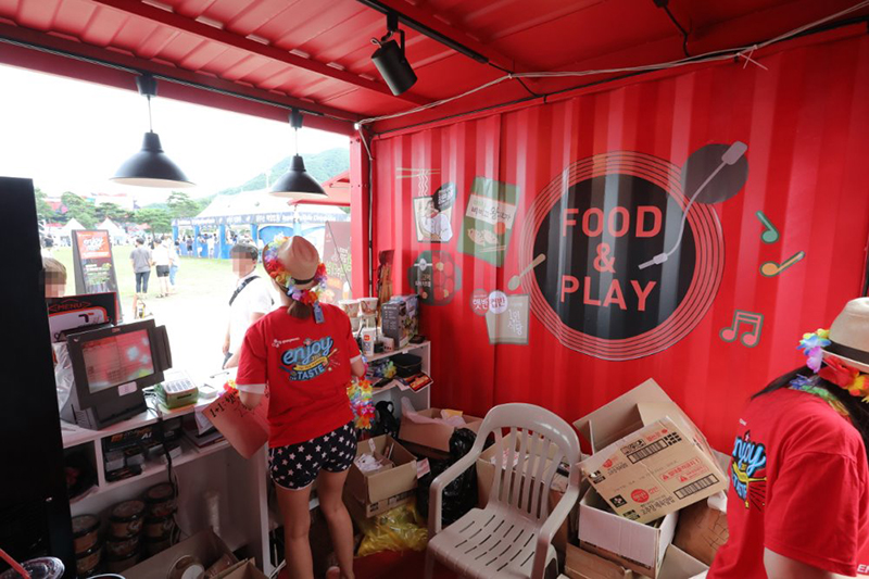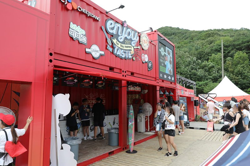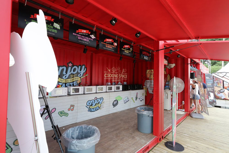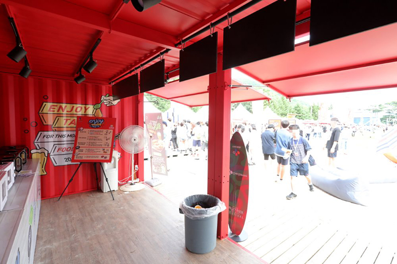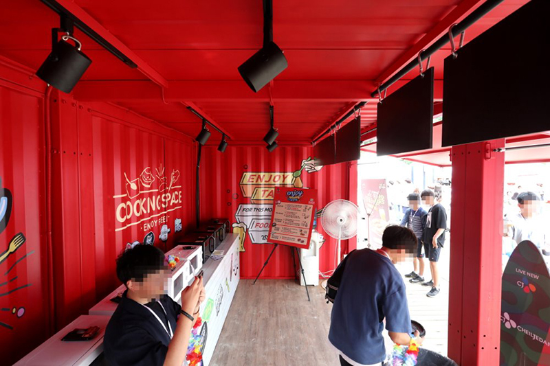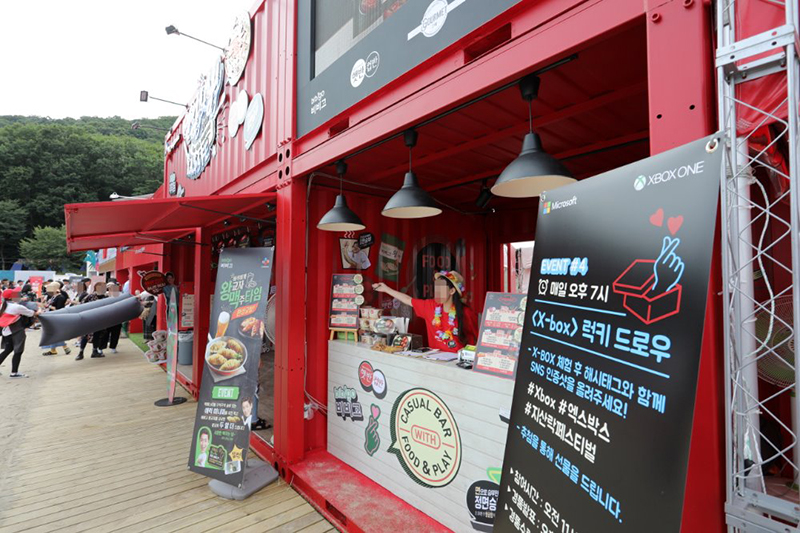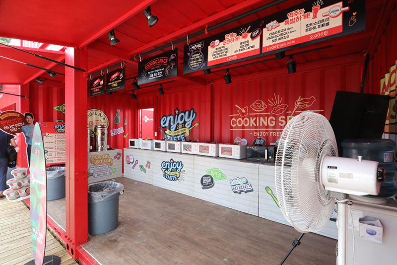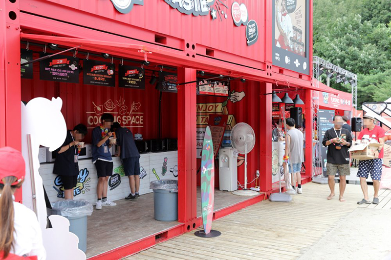 為了在節日中更好地提供各種配套生活服務,韓國一家食品公司在現場經營了一個集裝箱攤位,以便可以在同一個空間內解決餐飲和娛樂需求。