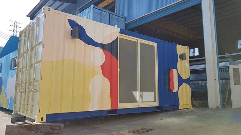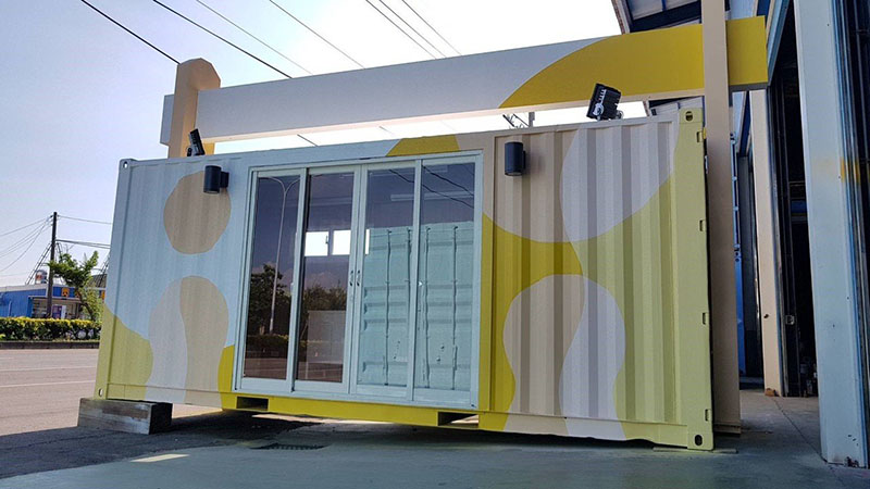 臺中市水利局表示,第五區服務設施創意集裝箱以【花田囍事】作為設計主軸,構想帶入豐原糕餅文化的繁榮意象,打造出5種辨識度高、造型各異的機能集裝箱,為花展帶去不一樣的色彩。