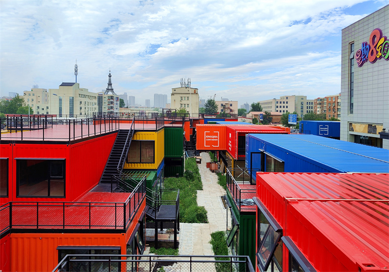 為什么選用集裝箱?集裝箱是對現(xiàn)有土地進(jìn)行充滿活力改造的一個很好例子,它可移動的特點(diǎn)使得箱體的運(yùn)用更為靈活,且集裝箱的使用壽命長,它能通過積極的再利用而不是大規(guī)模的拆除和重建來延續(xù)其在城市中所承擔(dān)的功能。同時,集裝箱建筑改造后新增的可租賃餐飲空間為客戶創(chuàng)造了更高的租金回報。