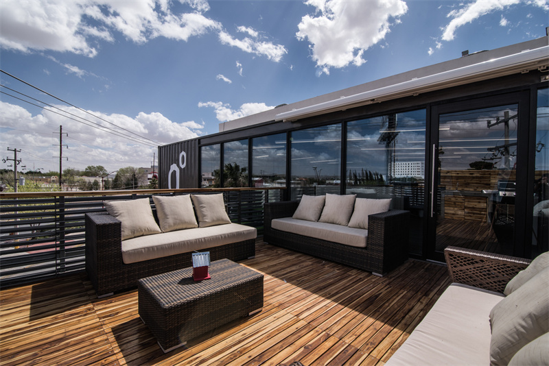 此外,辦公樓的頂部還有一塊室外的活動(dòng)區(qū)域,是一個(gè)露天陽(yáng)臺(tái)。布局也與室內(nèi)相似,主要追求舒適的享受。