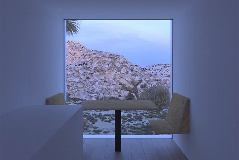 在許多窗口的位置,還設(shè)有上圖這樣的休閑卡座,從這里向外望去,可以看到約書亞樹國家公園的美景,確實是凝神靜心的好地方。