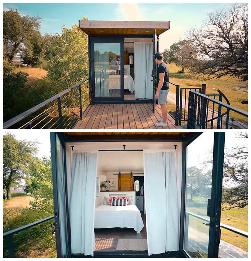 這間房子來(lái)自德克薩斯州的郊外,周?chē)h(huán)境非常不錯(cuò)~用集裝箱堆起兩層屋子,面積僅有44㎡,但設(shè)施卻一應(yīng)俱全,兩室兩衛(wèi)、客餐廳、休閑區(qū)都很寬敞,還有吧臺(tái)!