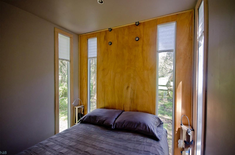 這個(gè)小房子的整體風(fēng)格是現(xiàn)代的,具有強(qiáng)烈的工業(yè)外觀。室內(nèi)設(shè)計(jì)很好,很簡(jiǎn)單。有竹乙烯基地板和淺色調(diào)色板與溫暖的木材口音,通風(fēng)和邀請(qǐng)的感覺。廚房被整合到一個(gè)獨(dú)立的模塊中,包括吧臺(tái)下的一個(gè)小冰箱、微波爐、烤面包機(jī)和水槽以及相當(dāng)多的存儲(chǔ)空間。其中一面墻上還掛著一張漂浮的桌子,對(duì)面墻上有一個(gè)工具儲(chǔ)藏柜,中間有一個(gè)小圓桌,里面有幾把金屬椅子。臥室足夠大,可以放一張大號(hào)床,還有一些活動(dòng)空間,浴室里有淋浴、衛(wèi)生間、一個(gè)小梳妝臺(tái)和通往衣櫥的通道。
