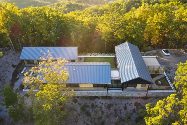 這座木別墅是為一對夫婦設計的,別墅分為三個不同的房子,這使得整個住宅能夠被分隔開來,以有效地滿足業主的需求,并能夠在孩子和孫子過來的期間把空間擴展到相鄰的房屋。該項目位于布朗特縣的一個山脊上,就在馬里維爾郊外,可以從這里俯瞰大煙山國家公園,包括格雷戈里的禿頂公園。