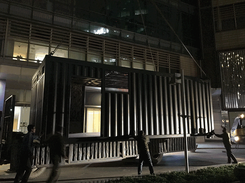 整個集裝箱生產在工廠訂制完成,項目地處繁華都市,白天不能影響寫字樓辦公及周邊商業正常運營,整個建筑的落地就是一夜之間......