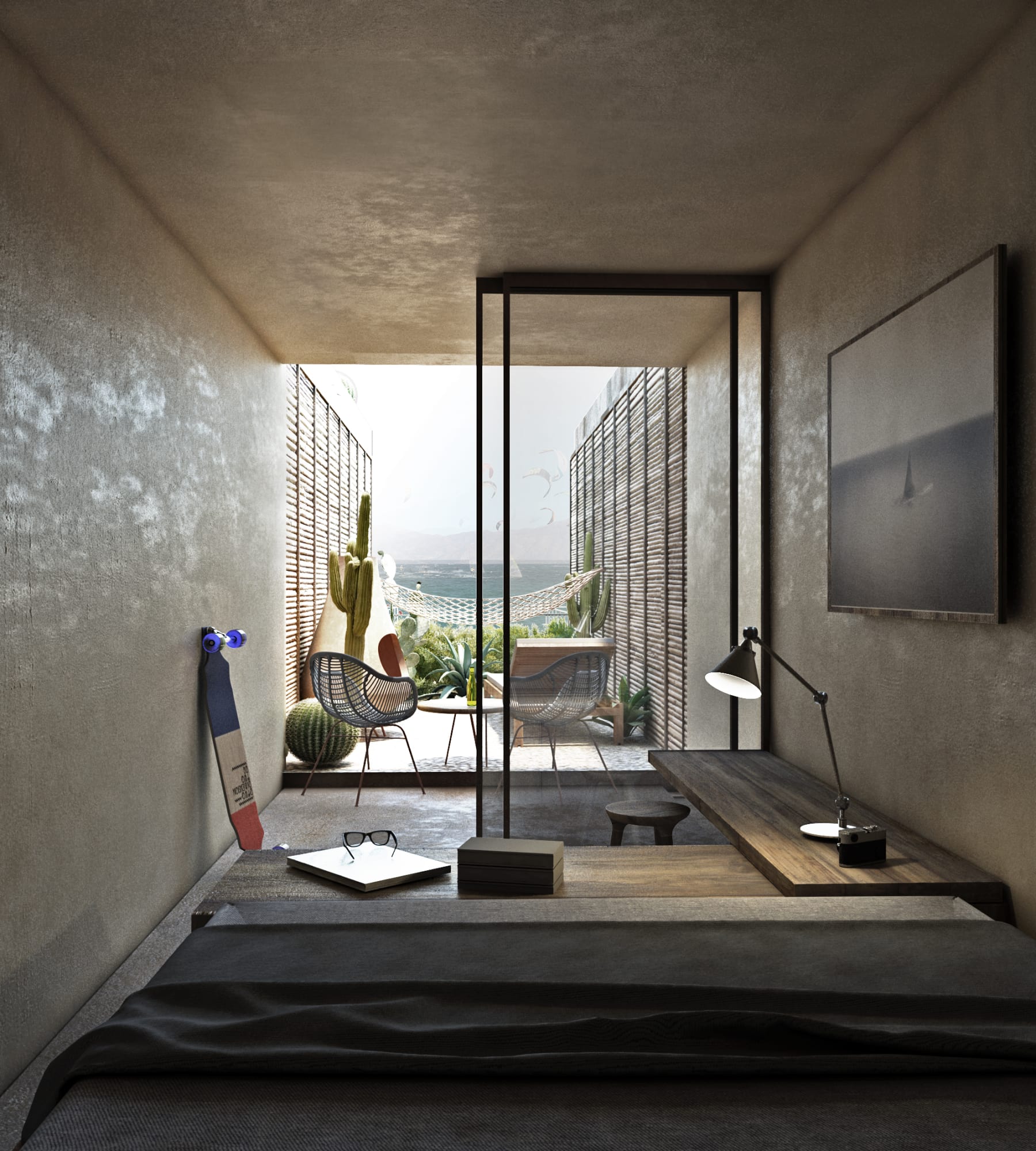 那么出于自身利益的考慮,以及為了能夠減少人類對地球造成的負面影響,我們決定對這些集裝箱進行改造,使其與環(huán)境相融合,充分適應(yīng)場地上的極端溫度條件。具體的操作手法則參照了下加利福尼亞州的傳統(tǒng)建造技藝。