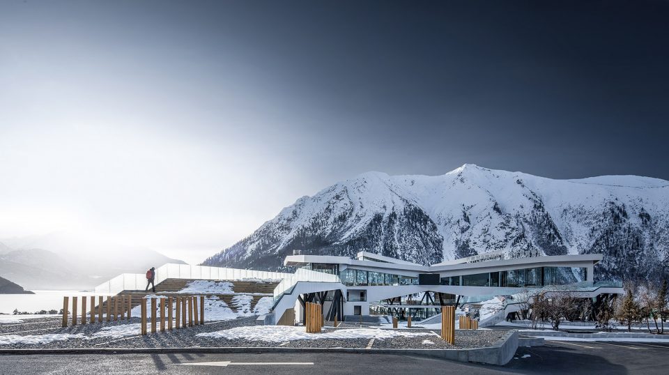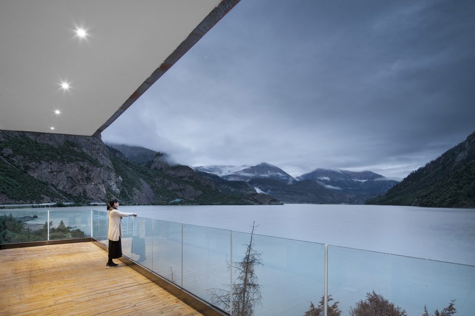 端坐在大懸挑的觀景陽臺上,遠處的藍天、白云、雪山、彩林倒映在藍綠色的湖面中,耳旁風聲、水聲潺潺拂過,沐浴著高原的暖陽,嘬一口美味的咖啡或是聞著淡淡的茶香,抑或是把愛人、家人的笑臉烙在旅途的膠片上……